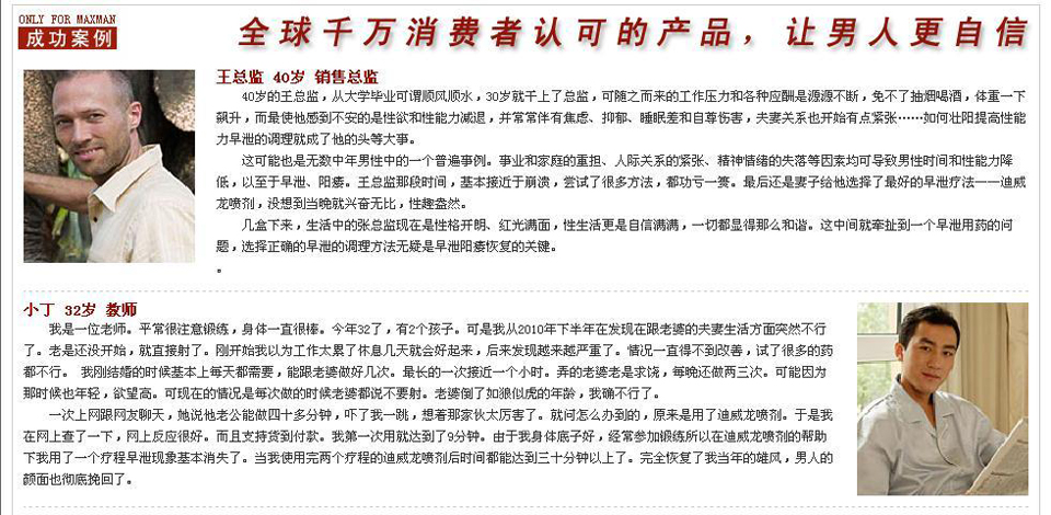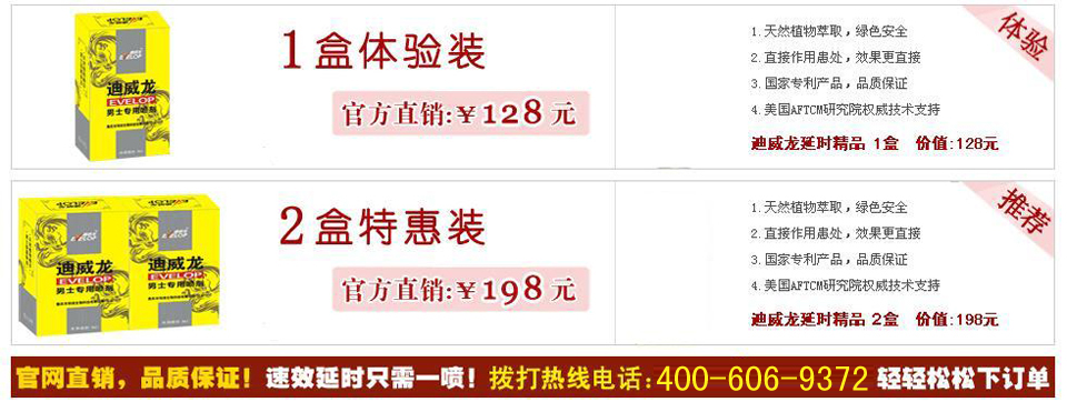 | 迪威龙喷剂官方网站 主要经营(迪威龙喷剂)男性用品、医疗器械、及保健用品等。我们以求真务实的方针,以勇于创新的精神,以质优价廉的产品拓市场,以守信负责的经营理念。来满足广大顾客高效,快捷,方便,实惠的购物新趋向。 |